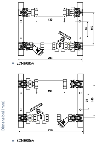 Modulo per impianto di riscaldamento/raffrescamento, utilizzato per la misurazione dei consumi di energia termica di ogni singola utenza. Il modulo è pre-assemblato su dime di alloggiamento, per facilitarne il successivo montaggio in cassetta o cavedio.