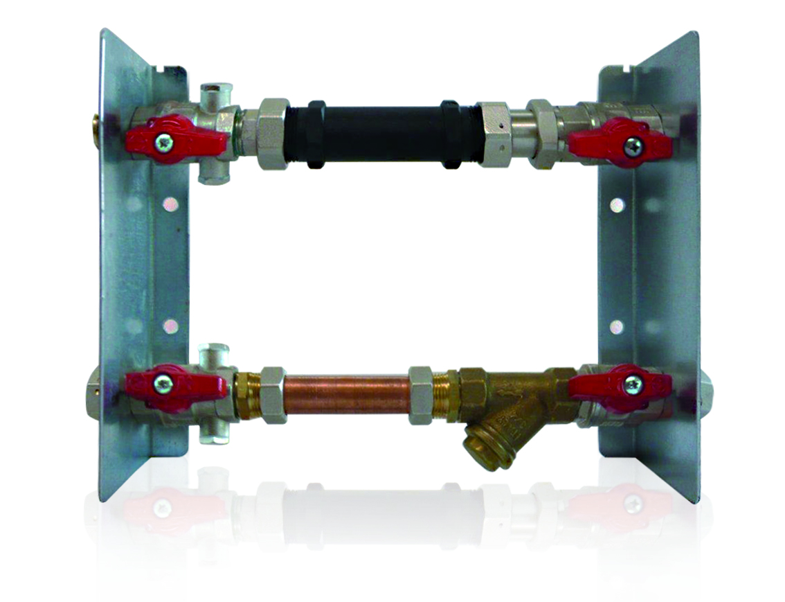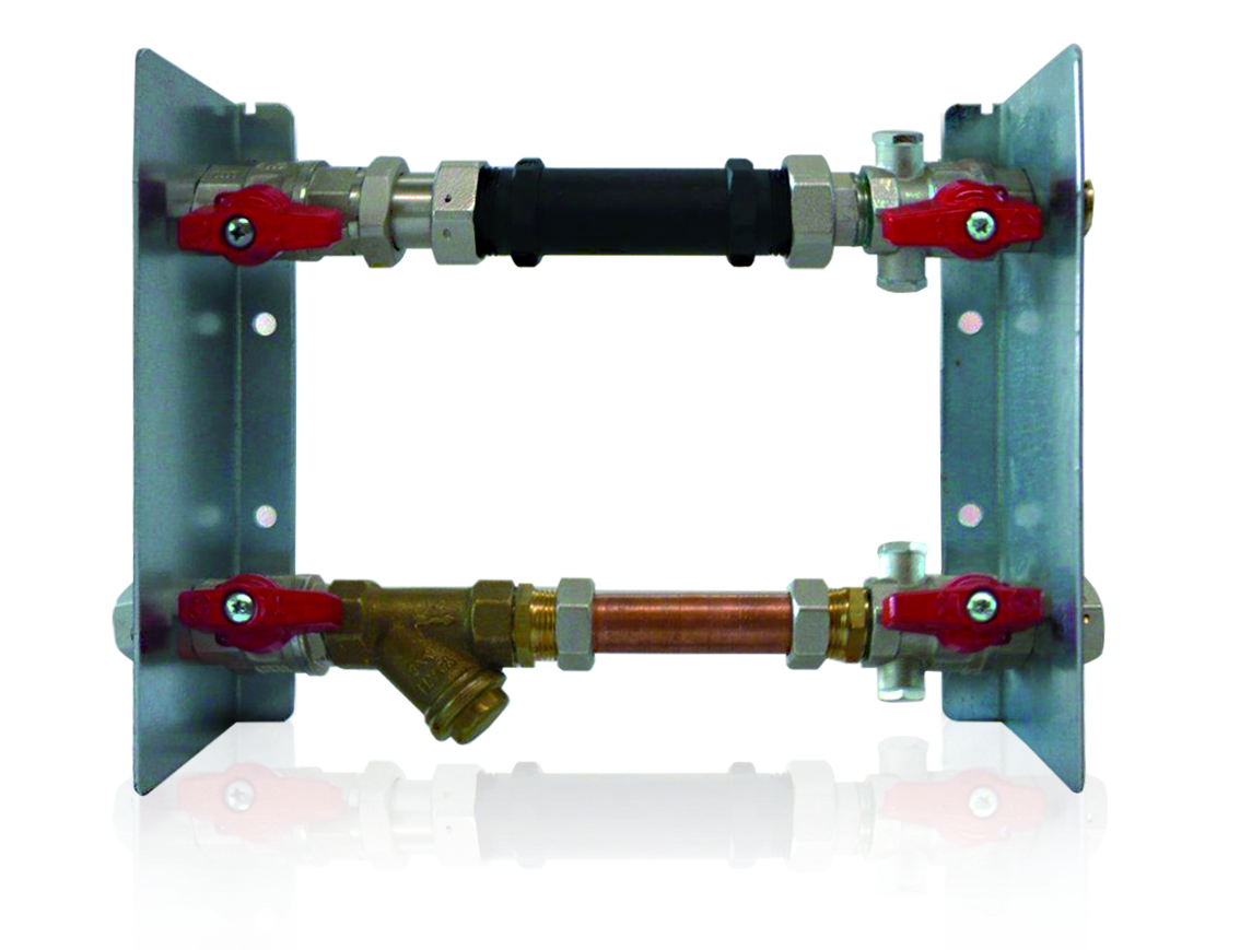 Modulo per impianto di riscaldamento/raffrescamento, utilizzato per la misurazione dei consumi di energia termica di ogni singola utenza. Il modulo è pre-assemblato su dime di alloggiamento, per facilitarne il successivo montaggio in cassetta o cavedio.